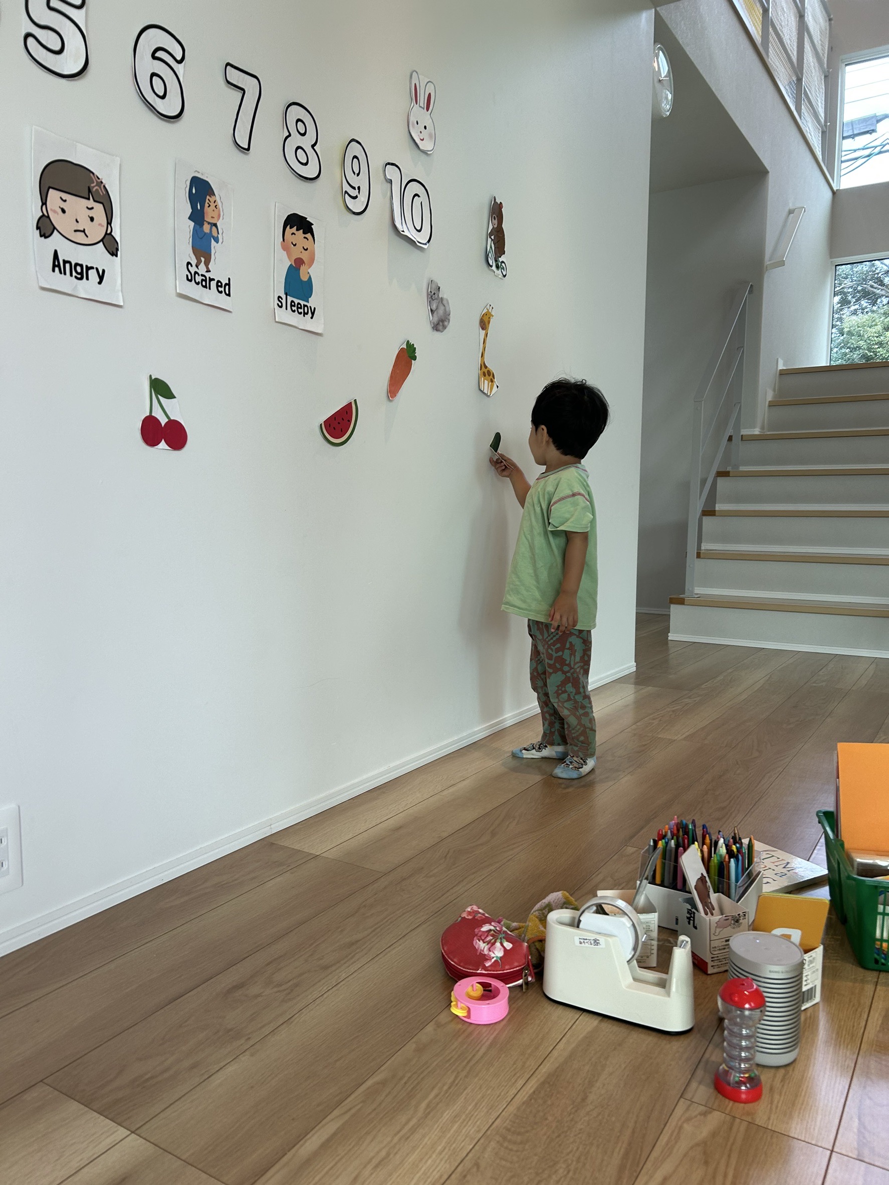 壁にパネルをぺたぺた!数字、気もち、動物に食べ物・・・