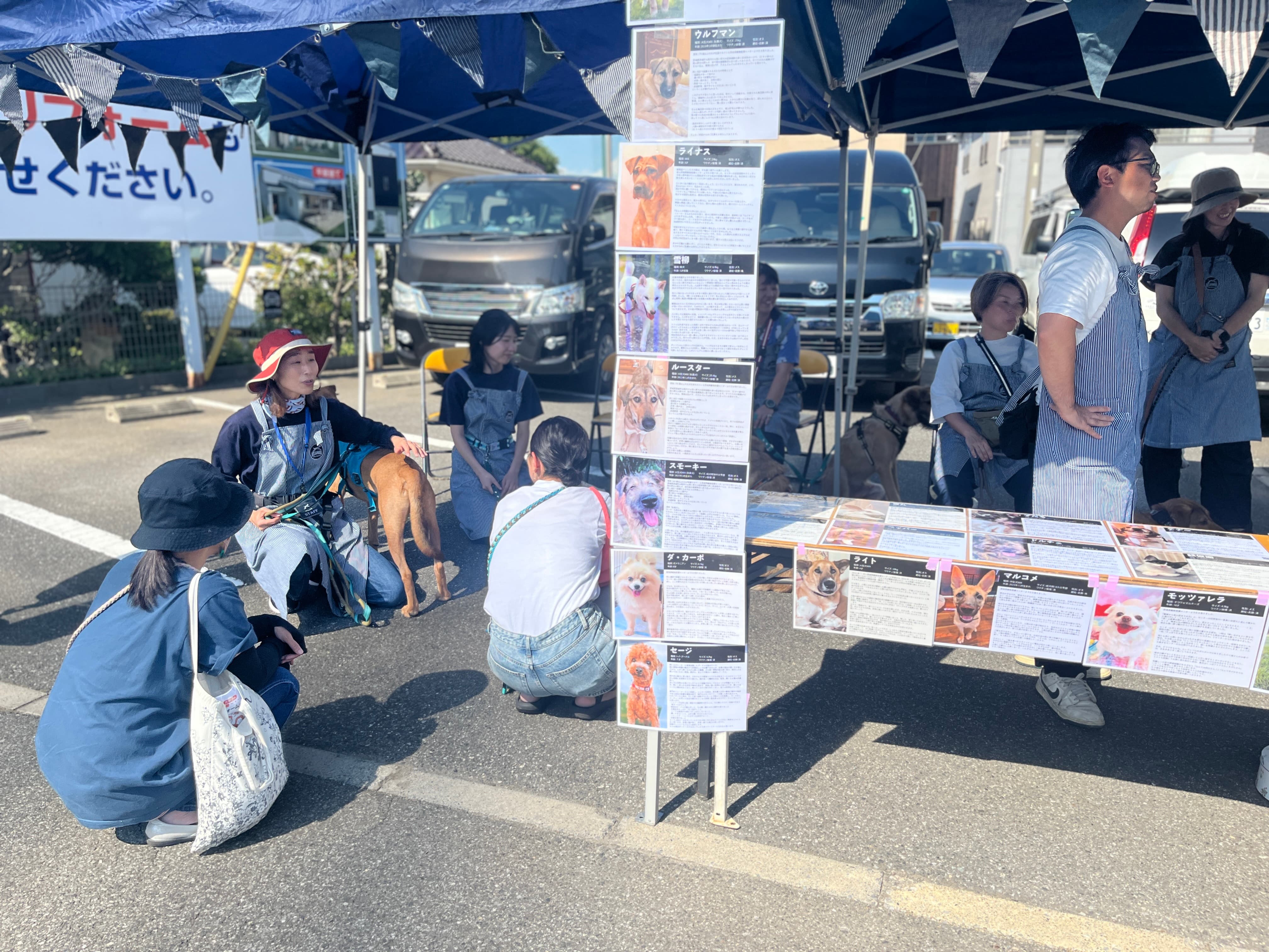 外のテントでは『NPO法人 Delacroix Dog Ranch』さんの保護犬ちゃんたちが待機!