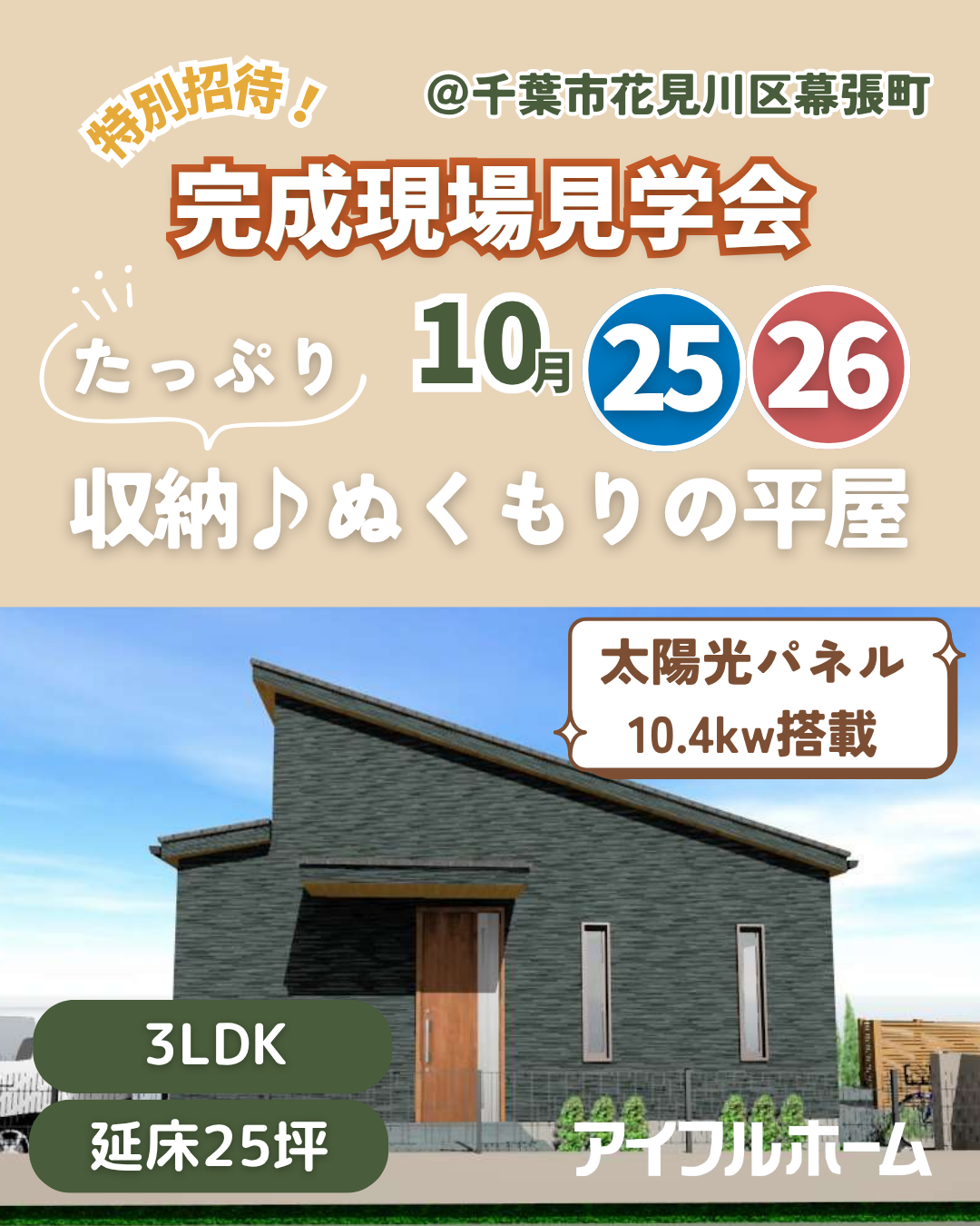 収納たっぷり♪ぬくもりの平屋|完成現場見学会|千葉市花見川区幕張町【アイフルホーム】