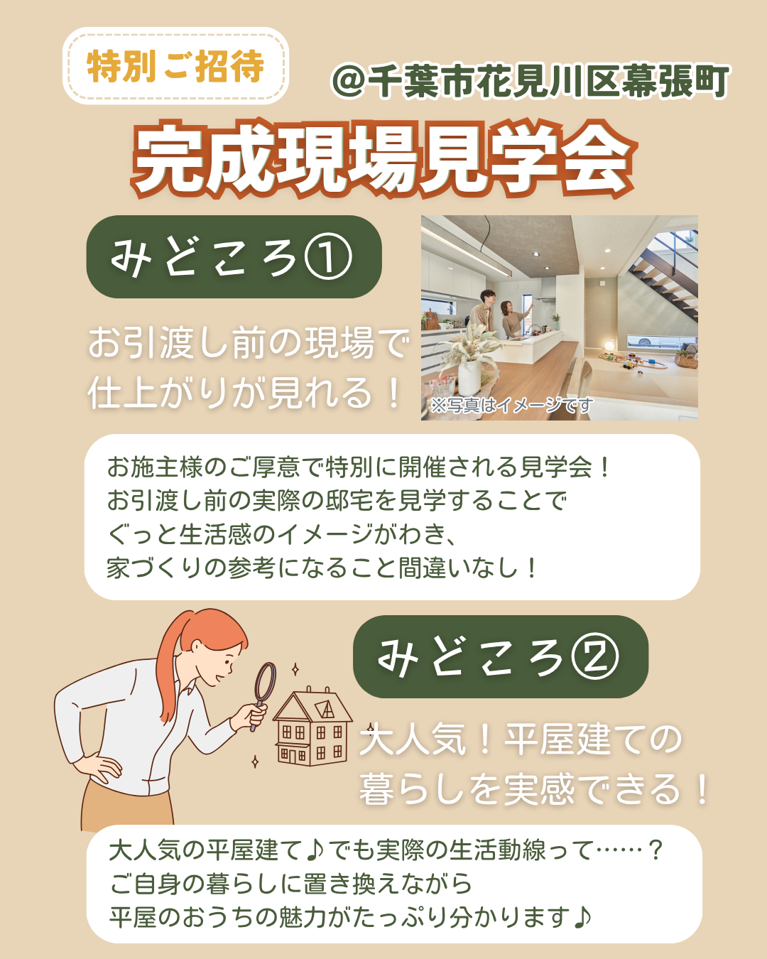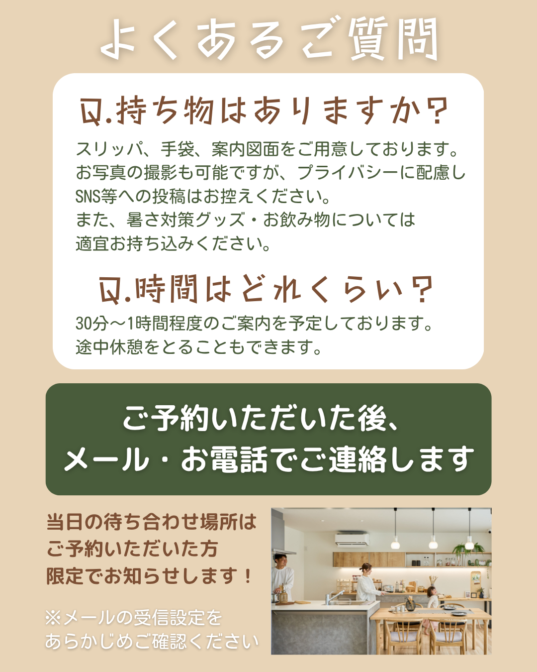 当日はお写真の撮影も可能ですが、お施主様のプライバシーに配慮しSNS等への投稿・第三者への画像データの共有はお控えください。