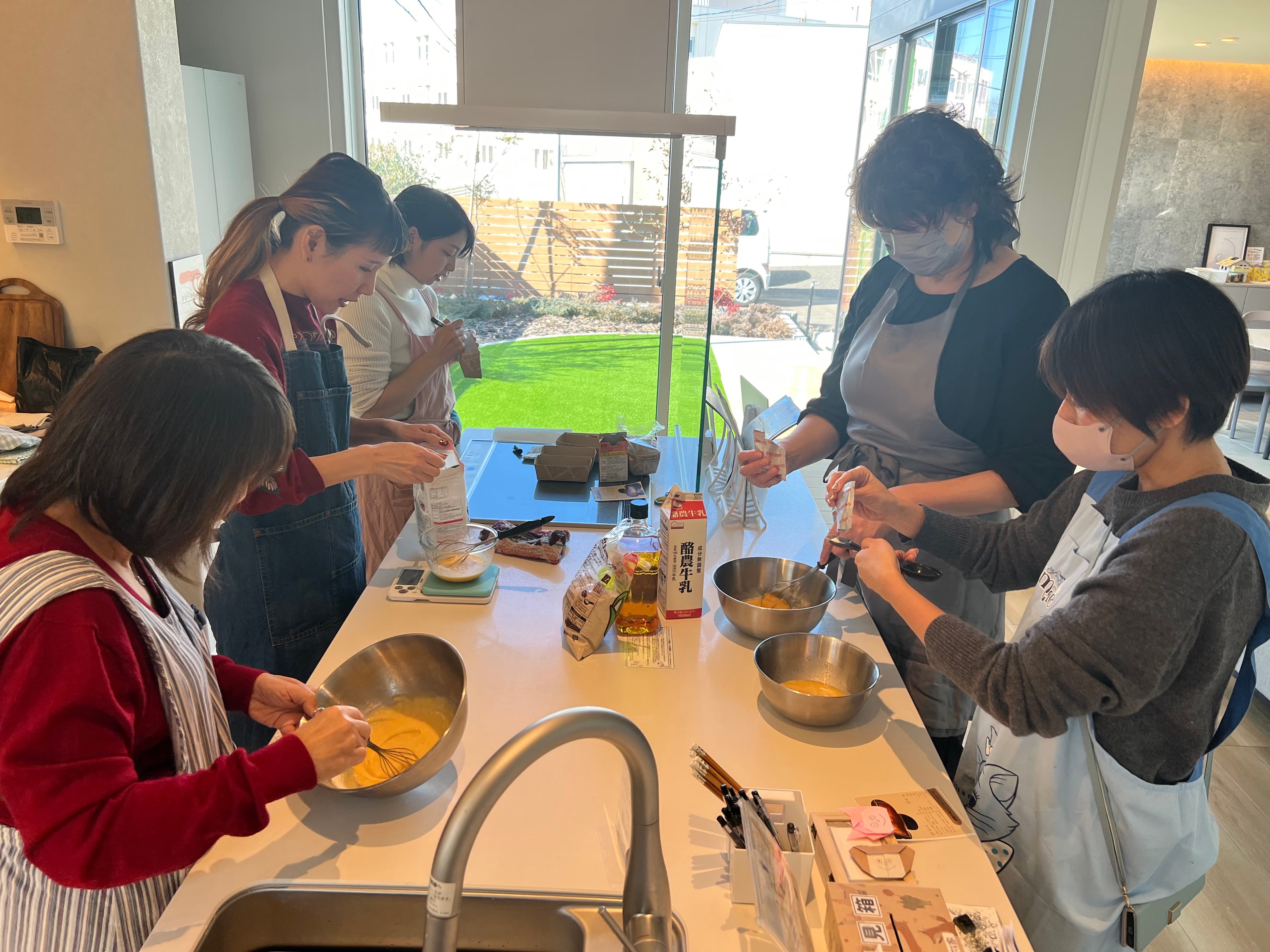 広いキッチンで楽しくお話しながら作っていきます♪
