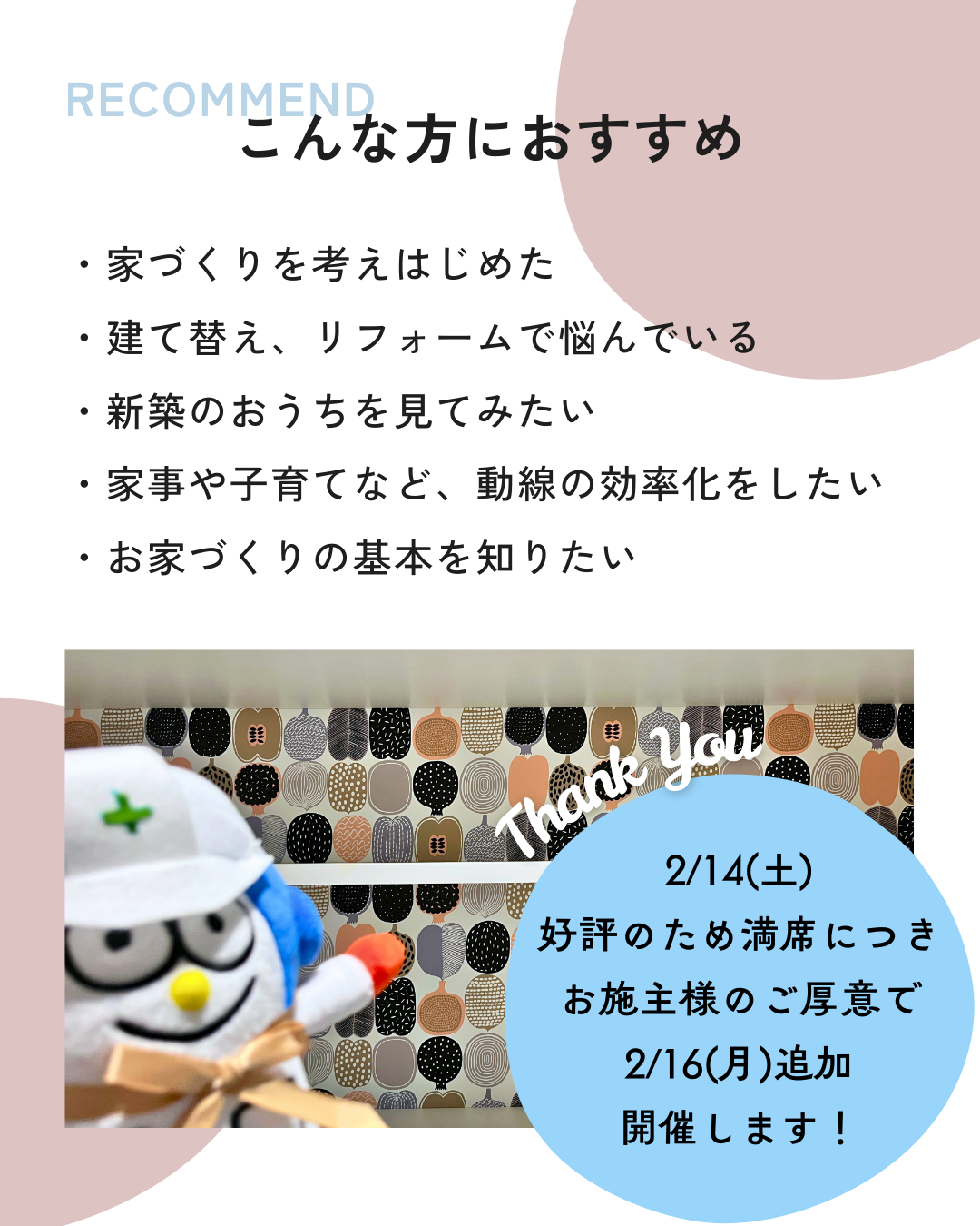 お施主様のご厚意で、2/16(月)も追加開催が決定いたしました!★