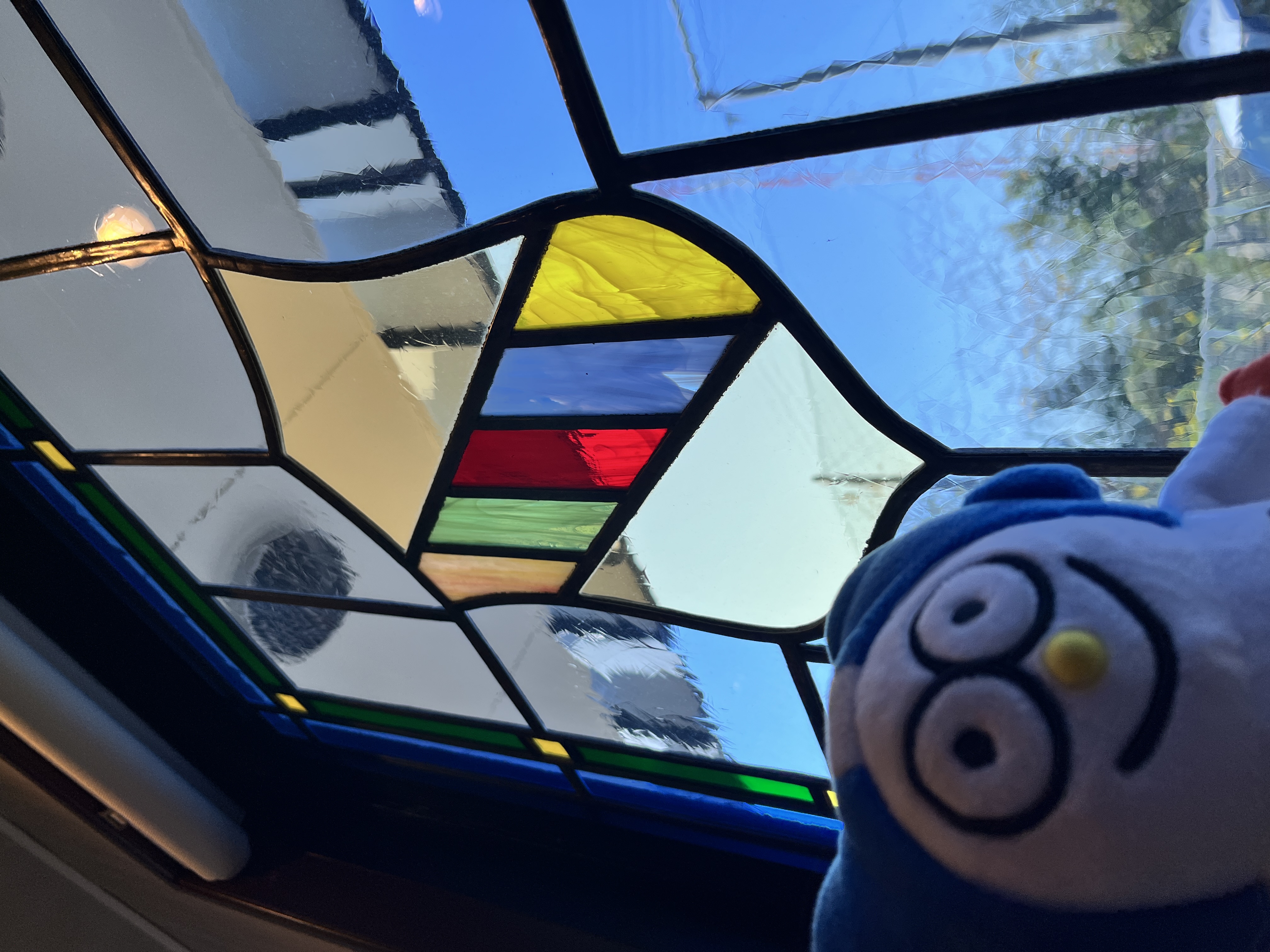 ステンドグラスのすてきなこちらのレストランで、ランチタイムです!