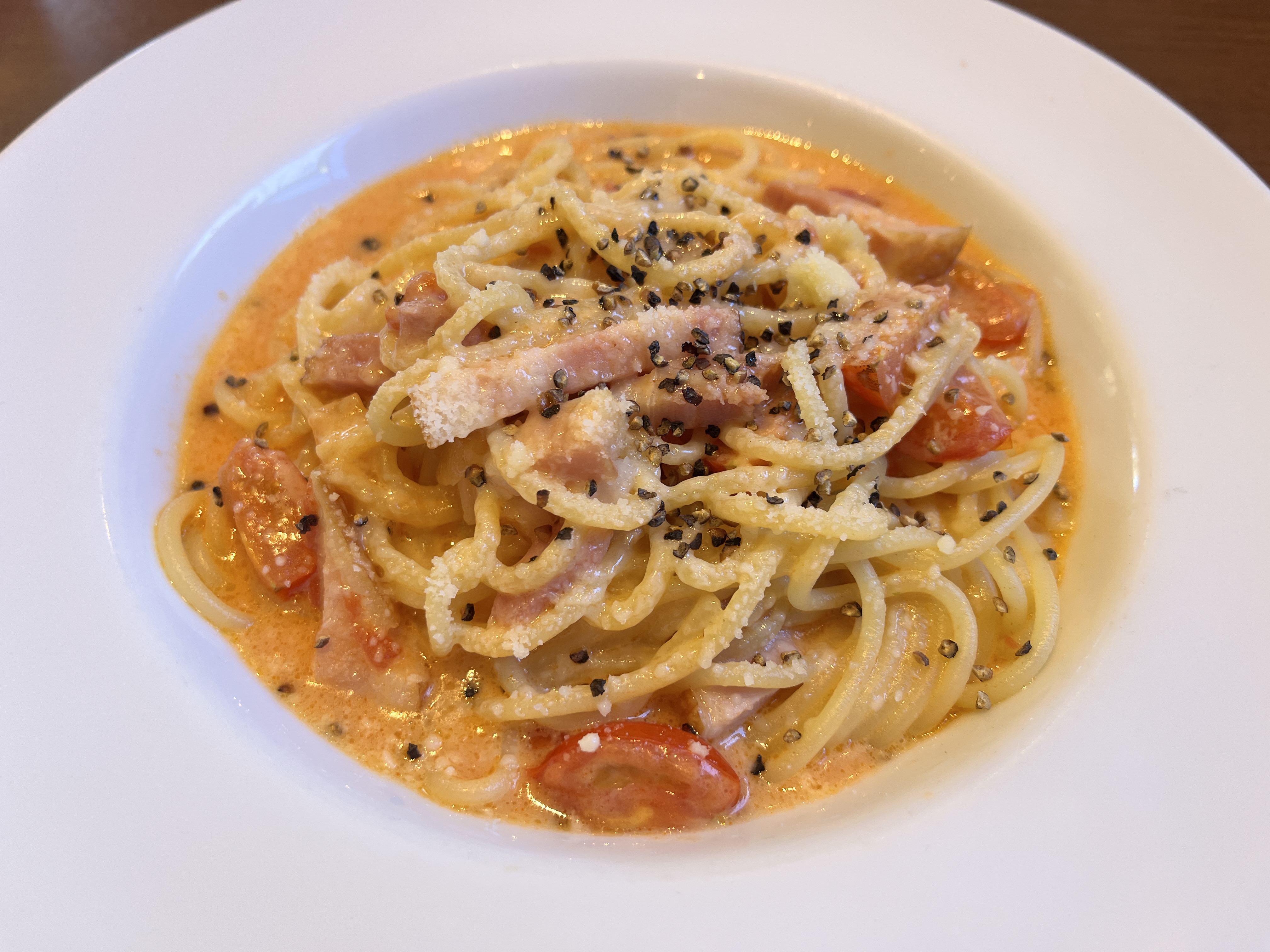 トマトカルボナーラパスタ!とってもおいしそうです!