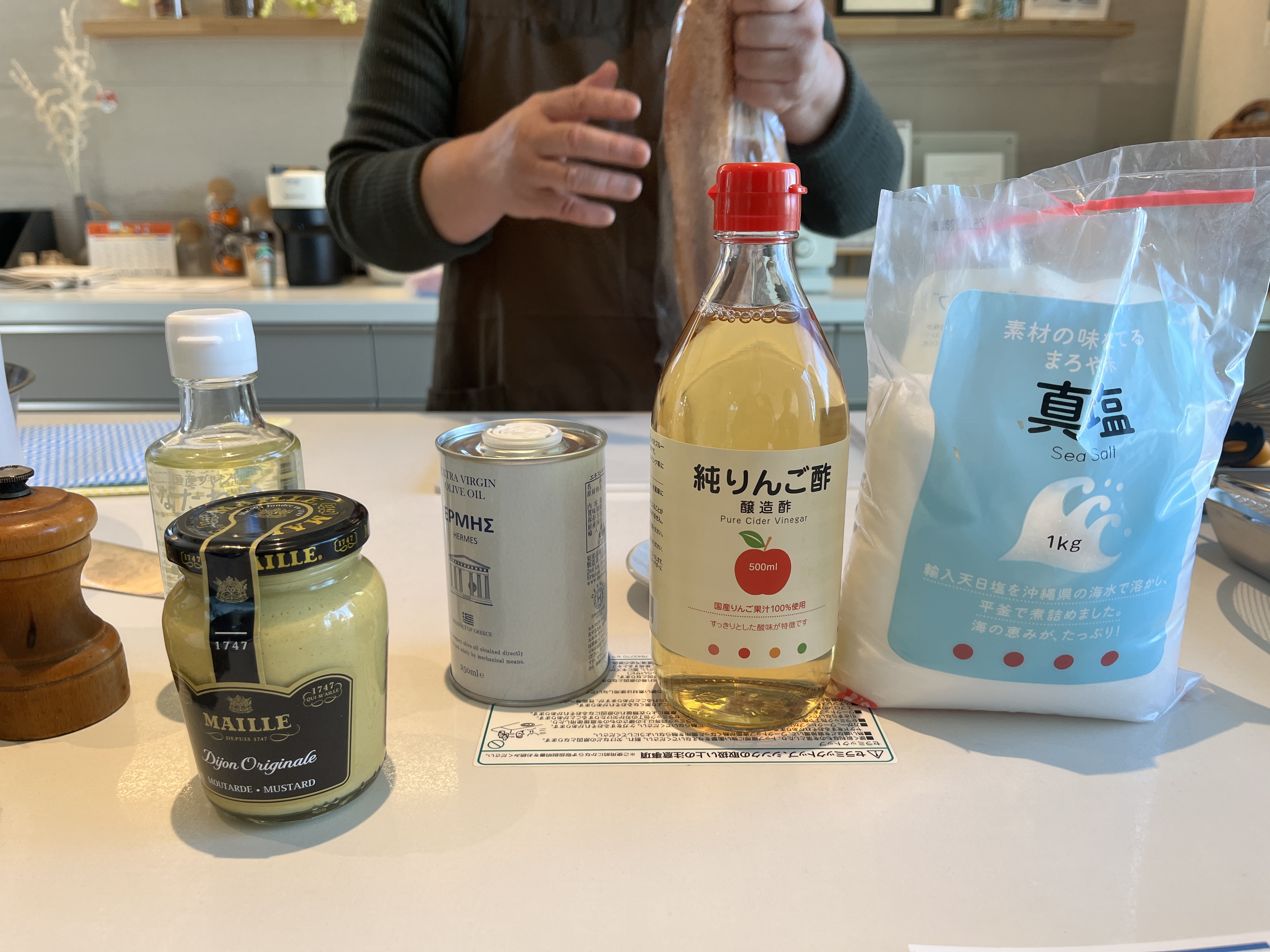 お塩にりんご酢、なたね油と……マスタード!