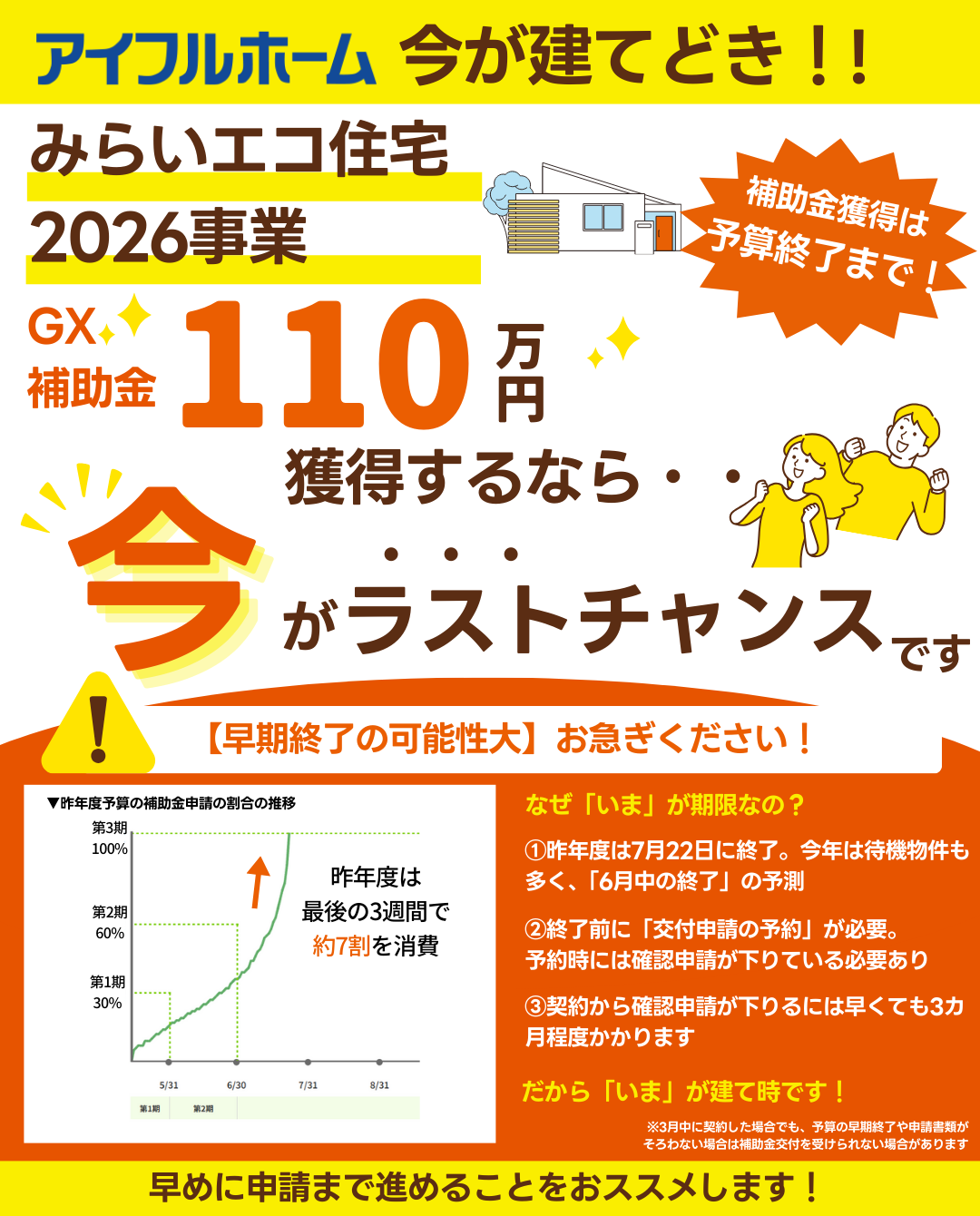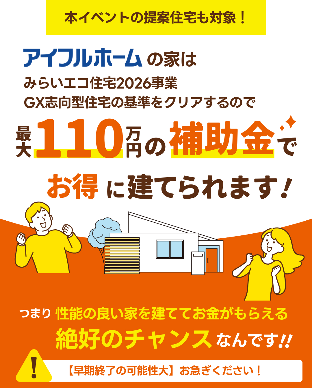 【みらいエコ住宅2026事業】に対応できるアイフルホームが、