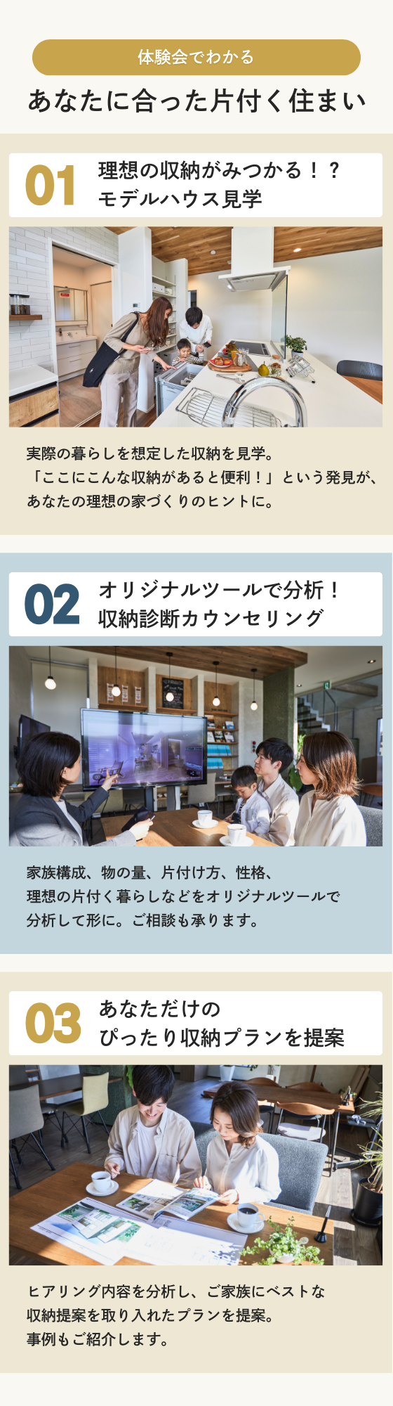 『収納診断カウンセリング』でお悩みを解決し、理想のお住まいをご提案します。