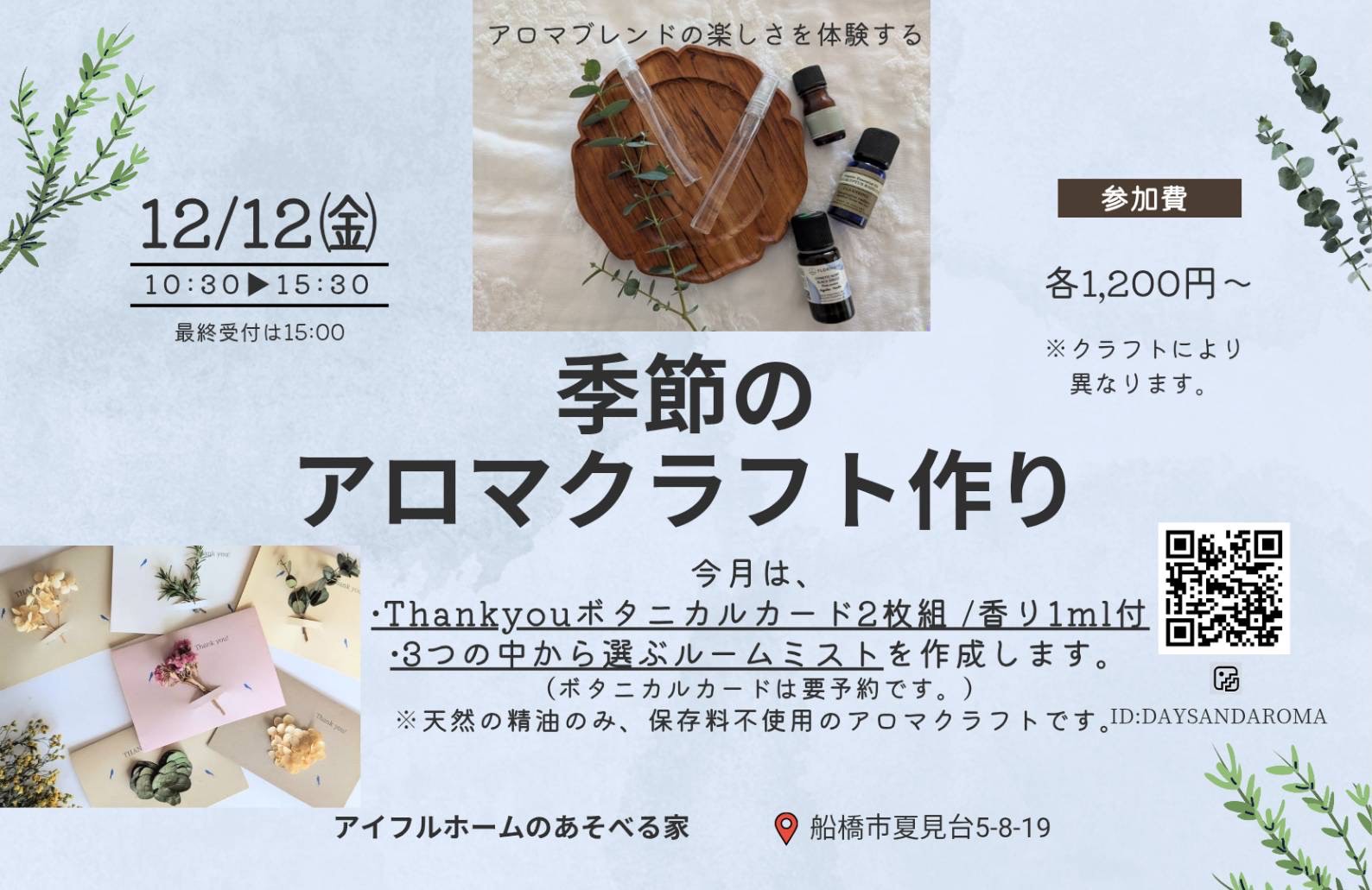 ボタニカルカード、ルームミストが作れます。