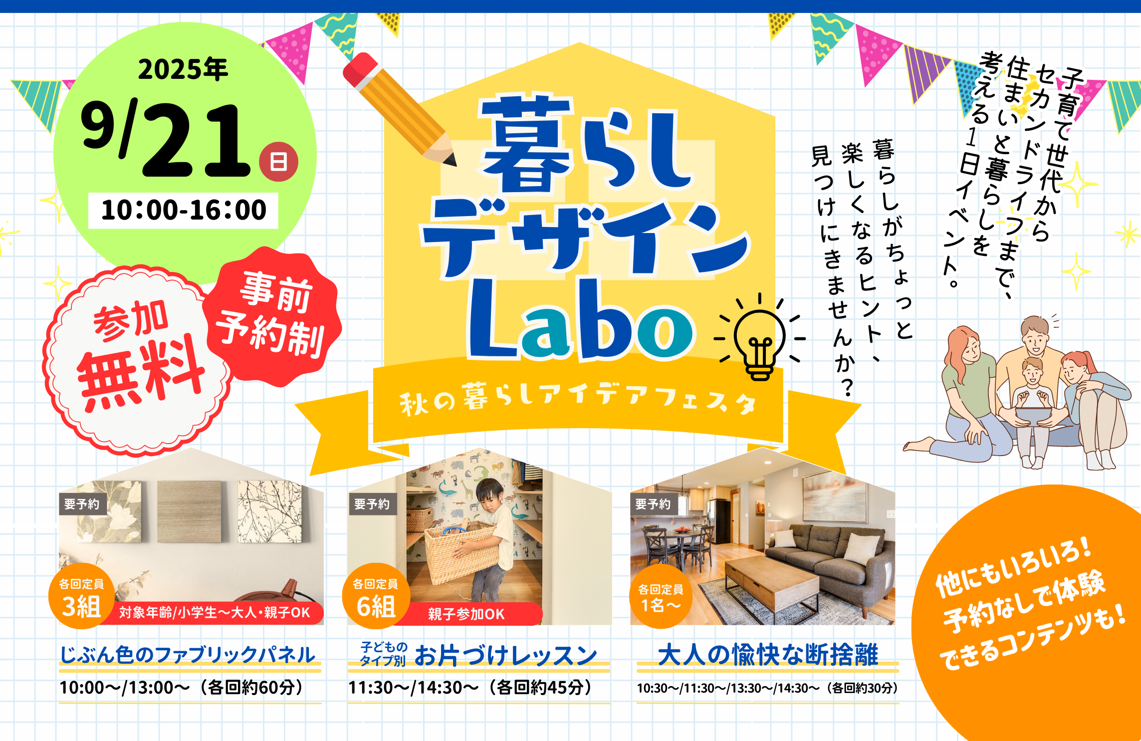 整理収納・インテリア・断捨離など、住まいに関わるアイディアを、親子で楽しく学べる一日♪
