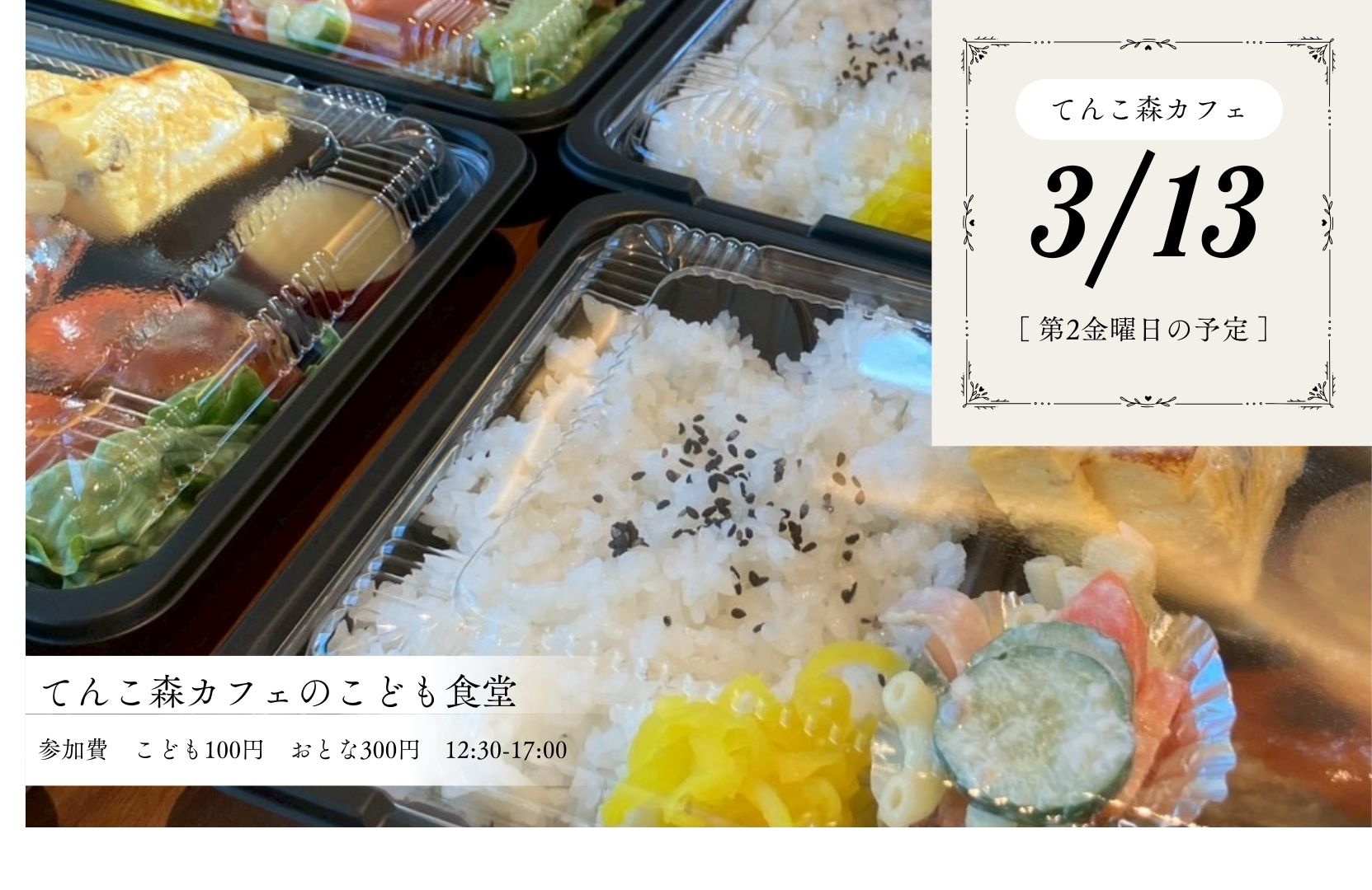 3/13(金)てんこ森カフェの子ども食堂。お弁当形式。